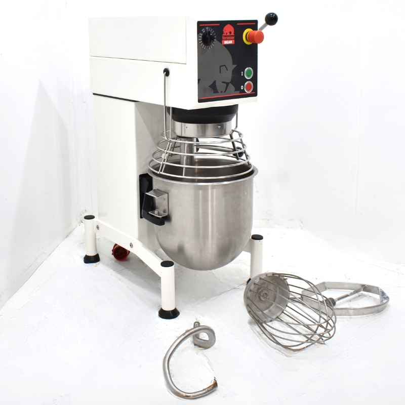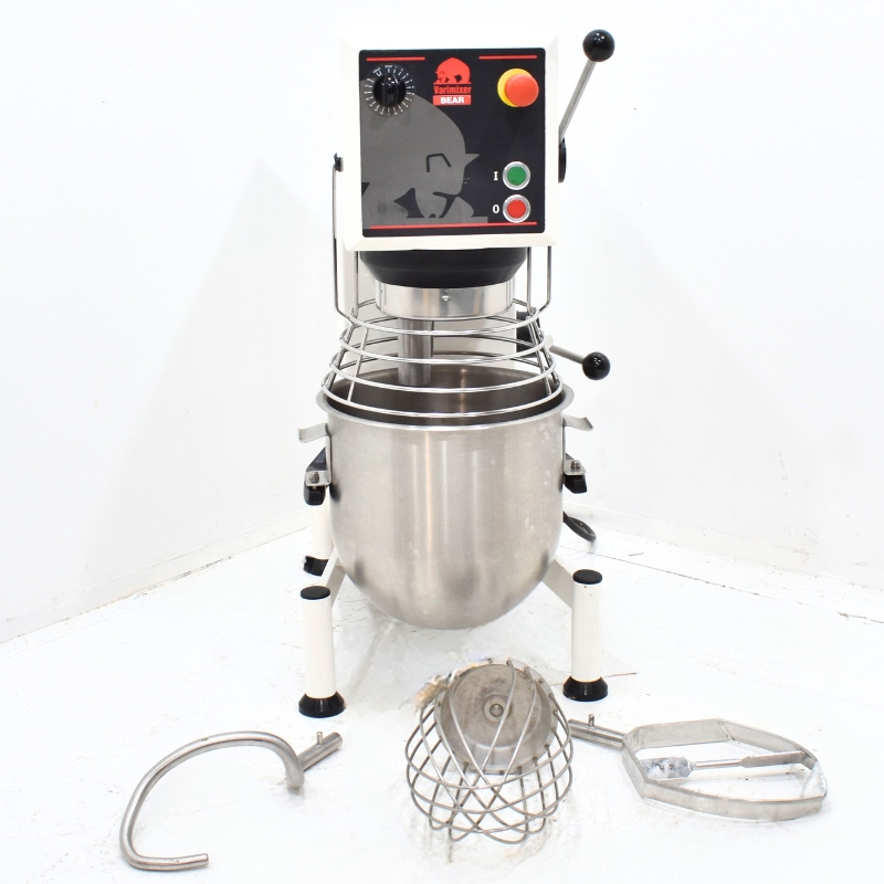 Degelijke Bear planeetmenger, type RN20, geschikt voor professioneel gebruik in bakkerijen en andere productieomgevingen. Deze compacte 20-liter menger is gebouwd voor langdurig en betrouwbaar gebruik.