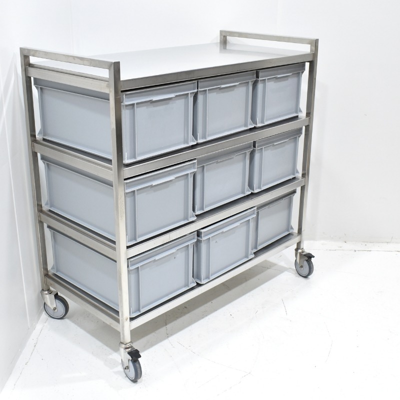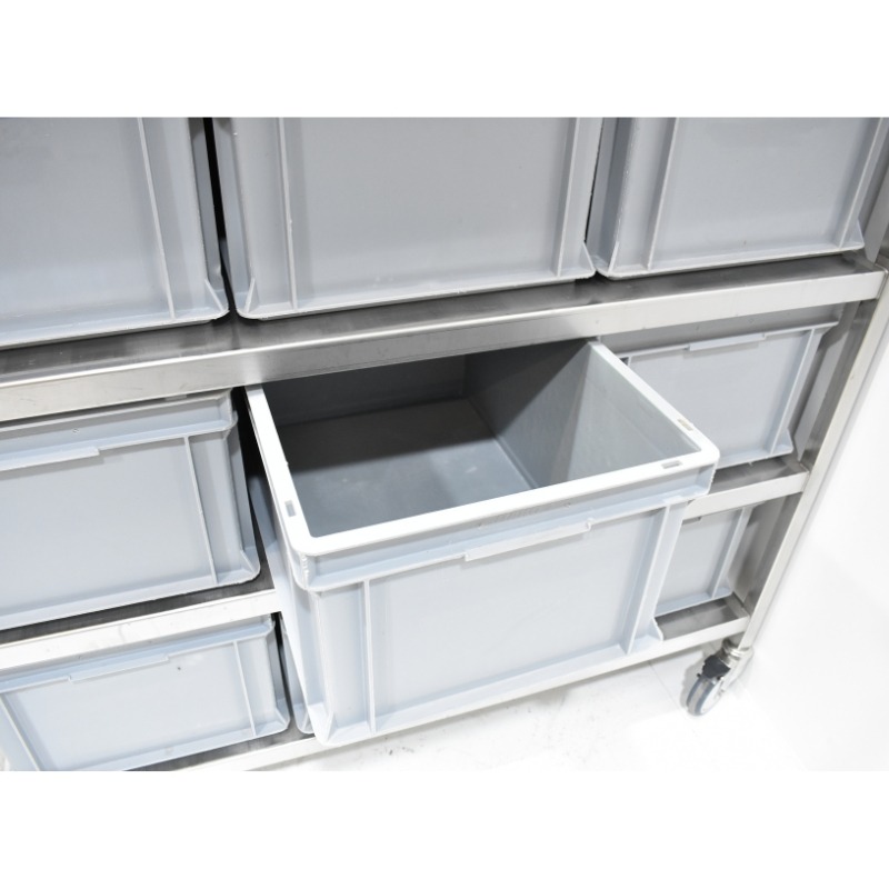 Deze tafel is ideaal voor het efficiënt en hygiënisch opslaan van grondstoffen in de bakkerij of andere productieomgevingen.
