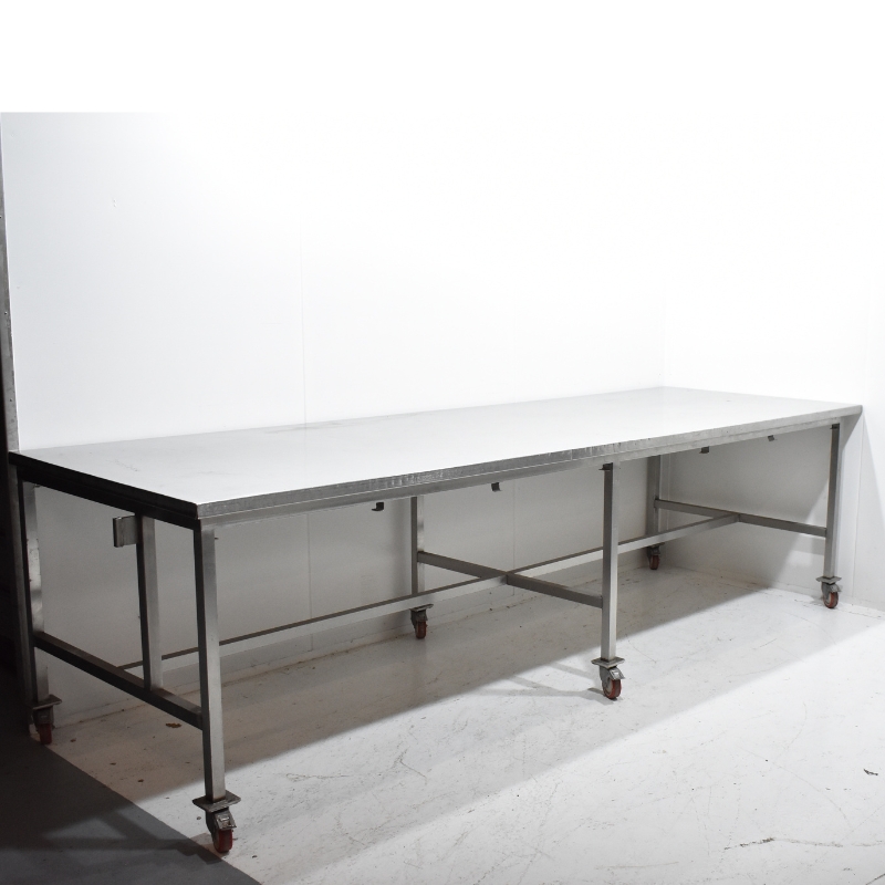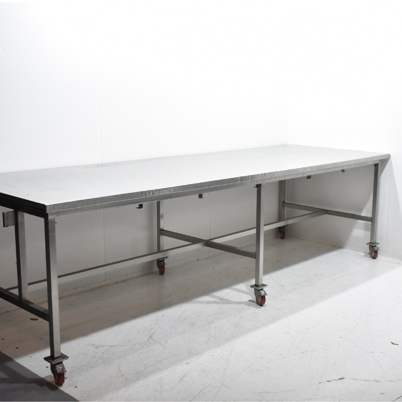 RVS Werkbank op Wielen – 350 x 116 cm – Occasion