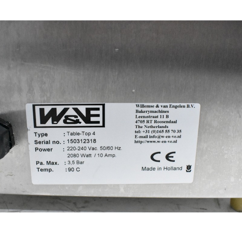 Compacte en krachtige occasion geleispuit van W&VE, ideaal voor het verwerken en aanbrengen van warme gelei, nappage en andere vloeibare afwerkingen. Perfect voor gebruik in de banketbakkerij.